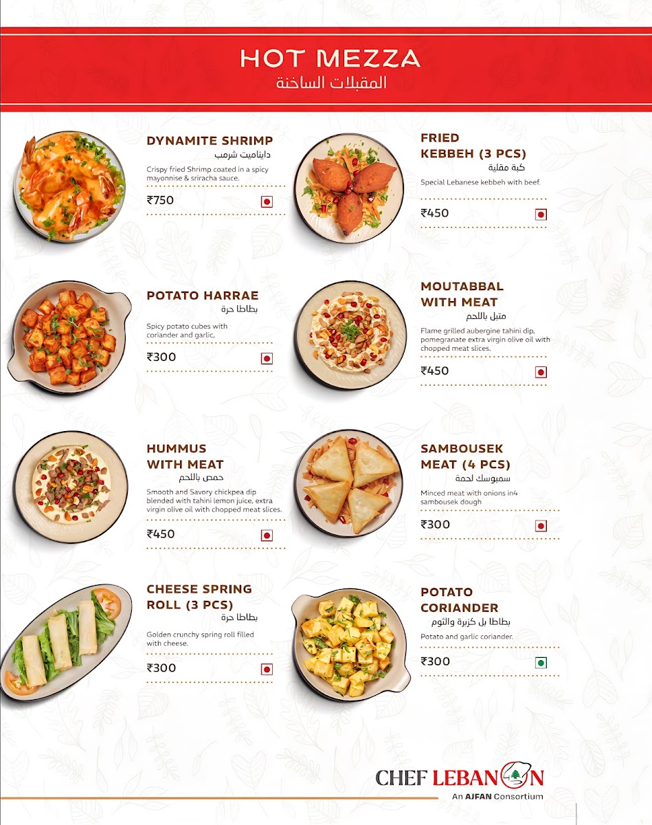Nestled in the heart of Changuvetty, Kottakkal, Chef Lebanon India presents a vibrant fusion of authentic Lebanese and Mediterranean flavors. The menu invites diners to explore delightful options, such as the rich Lentil Soup and the creamy Chicken Cream Soup, both elegantly topped with crispy Arabic bread. For those who enjoy hearty meals, the Alfahm platter is a crowd favorite, serving generous portions perfect for sharing.